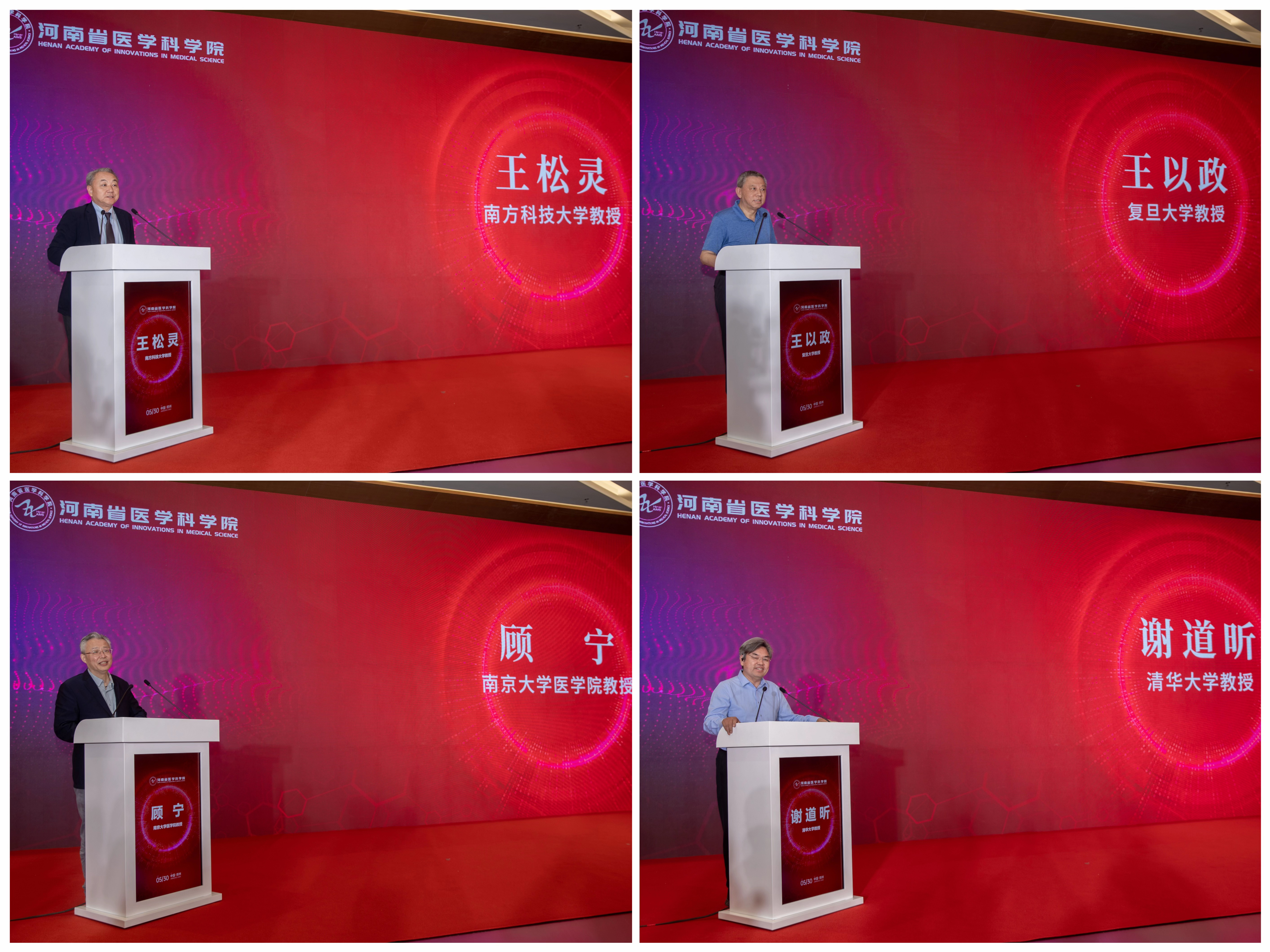 河南省卫生健康委党组副书记、副主任,省医学科学院党委书记侯红,河南省医学科学院院长王宁利教授,郑州市人民政府副市长李凤芝,河南省医学科学院生物治疗研究所所长杜杰教授,中国科学院院士顾宁教授、王松灵教授、王以政教授、谢道昕教授等领导与专家共同为生物治疗研究所揭牌。国内生物医学领域长江学者、国家杰青等顶尖专家与生物医药行业领军代表出席会议,共同见证这一里程碑时刻。