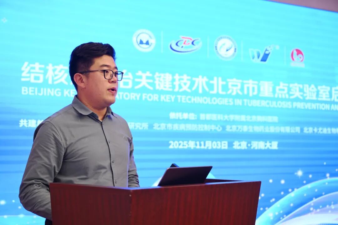 实验室主任逄宇在工作汇报中回顾了实验室从筹备到挂牌的历程,重点介绍了四家共建单位的优势特色。他特别指出,卡尤迪生物基于舌拭子的结核核酸检测方案具有重要创新价值,将为实验室在未来聚焦结核病发病机制研究、诊断工具研发等方面提供关键技术支撑。