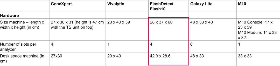 研究从实际应用出发,根据实验室技术人员在评估期间的经验,通过涵盖硬件、试剂盒、样本、处理时间、软件、实验室信息链接系统、床旁诊断可行性7大维度、共计32项指标的多维深度评估,深入对比各平台在实际应用中的综合表现。闪测™ Flash10在多个维度表现突出: