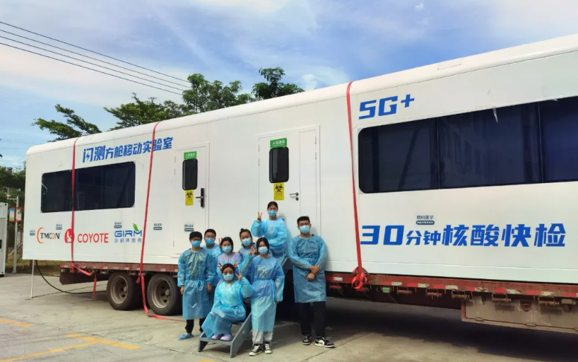 6月5日起,广州11个区启动全员核酸筛查。此轮广州疫情发生后,卡尤迪快速响应、机动部署、统筹调配,4台“闪测方舱”移动实验室集结广州,陆续奔赴广州荔湾区、海珠区、越秀区、天河区、佛山南海区等战“疫”一线,助力广州全员核酸检测工作,日检测能力达30万份以上。在6月7日湛江吴川新增了一名新冠无症状感染者病例后,6月8日吴川全市展开了全员核酸检测。2台“闪测方舱”移动实验室火速支援,分别与6月7日早上5点,和6月7日中午12点抵达吴川,单台日检测量均达10万人份以上,为核酸检测“提档加速”。