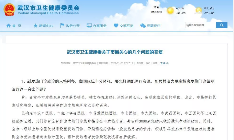 武汉卫健委答疑