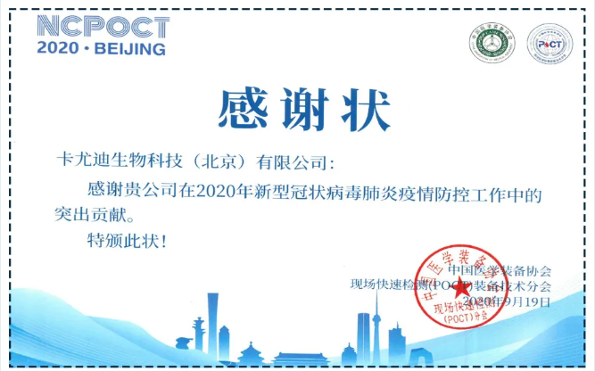 9月19日当天,在大会开幕式上,为了感谢在新冠肺炎疫情期间做出杰出贡献的传染病产品研发企业,为他们颁发杰出贡献奖。卡尤迪生物科技(北京)有限公司榜上有名!